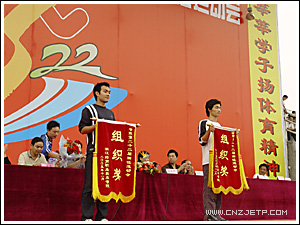 在全体与会人员的共同努力下,历时两天的运动会取得了圆满成功。获团体总分前六名的代表队依次是:计算机队、软件开发队、国际贸易一队、应用工程队、企业管理队和企业税务队。经运动会组委会评选,获最佳组织奖的分别是:财务会计系、人文旅游系。物流专业的杨灵林同学、企业税务专业的余丽霞同学分获最佳男女运动员奖。