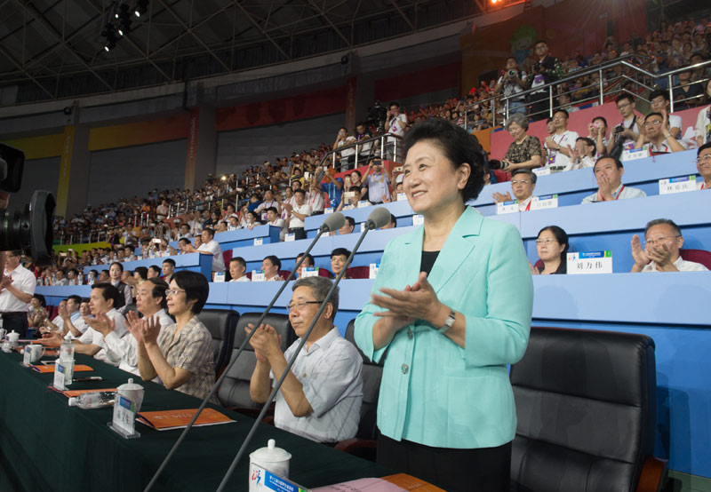 9月3日,第十三届全国学生运动会在杭州黄龙体育馆拉开帷幕。中共中央政治局委员、国务院副总理刘延东宣布第十三届全国学生运动会开幕。新华社记者 翁忻旸 摄