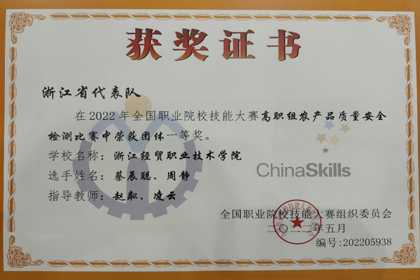 8月23日-27日,2022年度全国职业院校技能大赛高职组“农产品质量安全检测”赛项在陕西省杨凌职业技术学院举行。我校应用工程学院食品检验检测技术专业群的蔡辰聪、周静同学在赵粼、凌云两位老师的带领下,从全国各省(市、自治区)53支参赛队中脱颖而出,斩获全国一等奖。