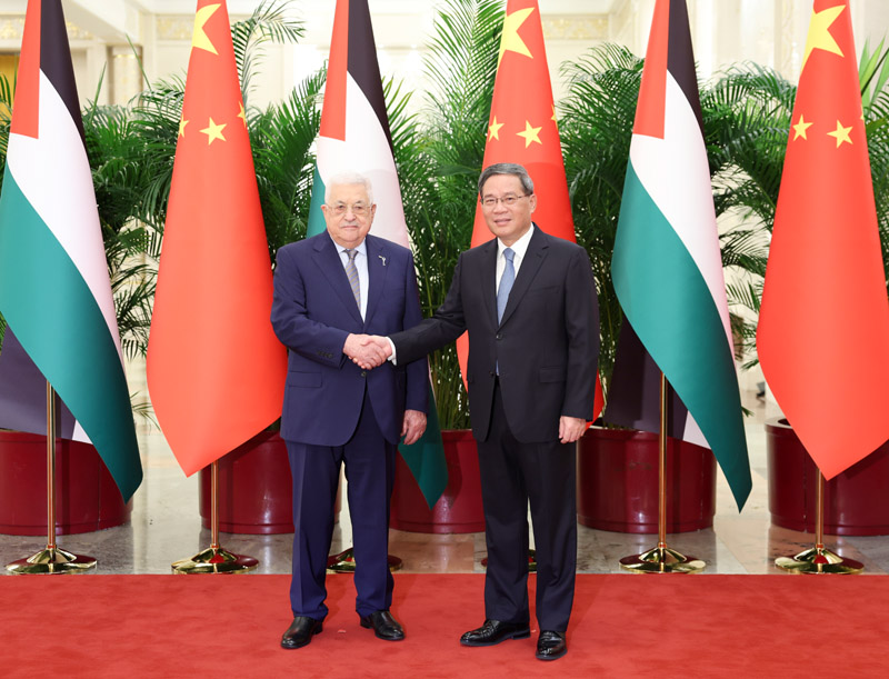 国务院总理李强6月15日上午在人民大会堂会见来华进行国事访问的巴勒斯坦总统阿巴斯。