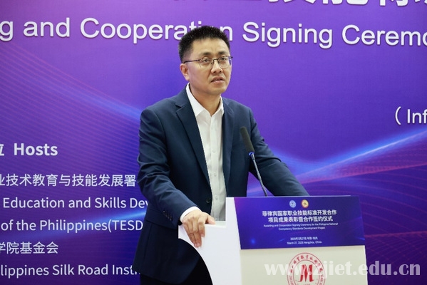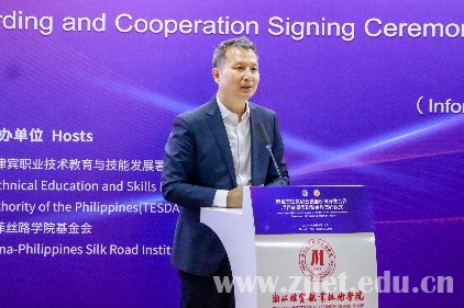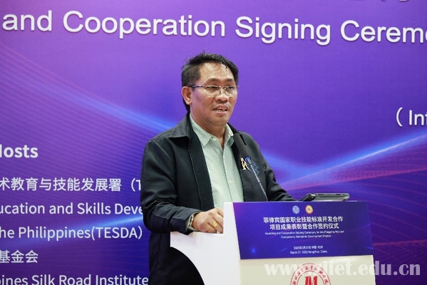 El Cid Castillo在致辞中高度评价了中国在职业教育领域的成果,并特别感谢中方院校为菲律宾职业技能标准开发项目所做出的巨大贡献。他表示,此次合作不仅加强了中菲两国在职业教育领域的交流与合作,更为菲律宾提升全球竞争力、培养高素质技能人才、推动产业升级提供了有力支持,他期待未来双方能够继续深化合作,共同推动职业教育事业高质量发展。